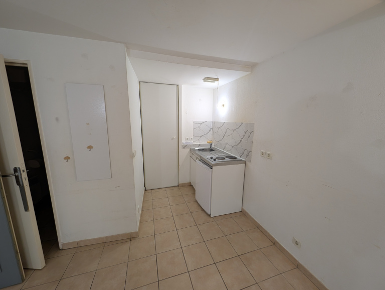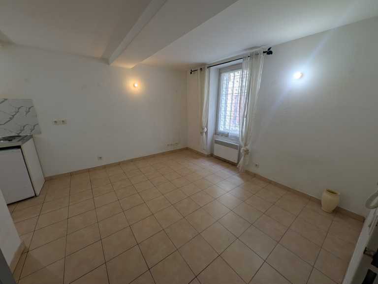 À Six-Fours-les-Plages, idéalement situé en centre-ville : studio de 18 m² comprenant un séjour avec kitchenette et une salle d’eau avec WC.
